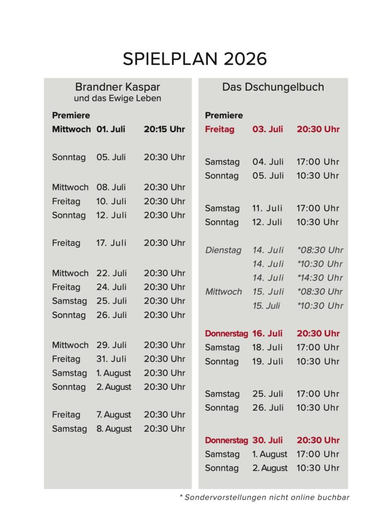 | 26.07.2026 | Sonntag | 20:30 Uhr | Brandner Kaspar und das Ewig Leben |